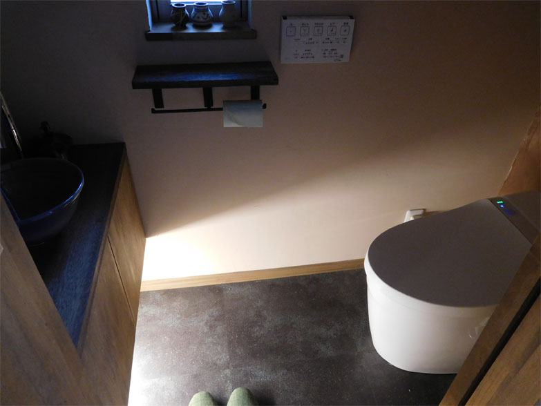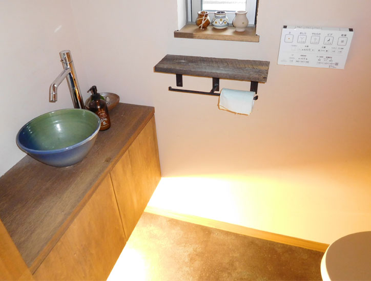 癒し空間にするのは、自分がボウルを探して来たり、自分で塗ったり、アートを施したり。こういった事が自分にとって労いとして、トイレ空間に佇むたびに自然と体感しているものとなるので、心身ともに癒される空間となる。ストーリーは、作った時の「出来事」だけではないのだ。